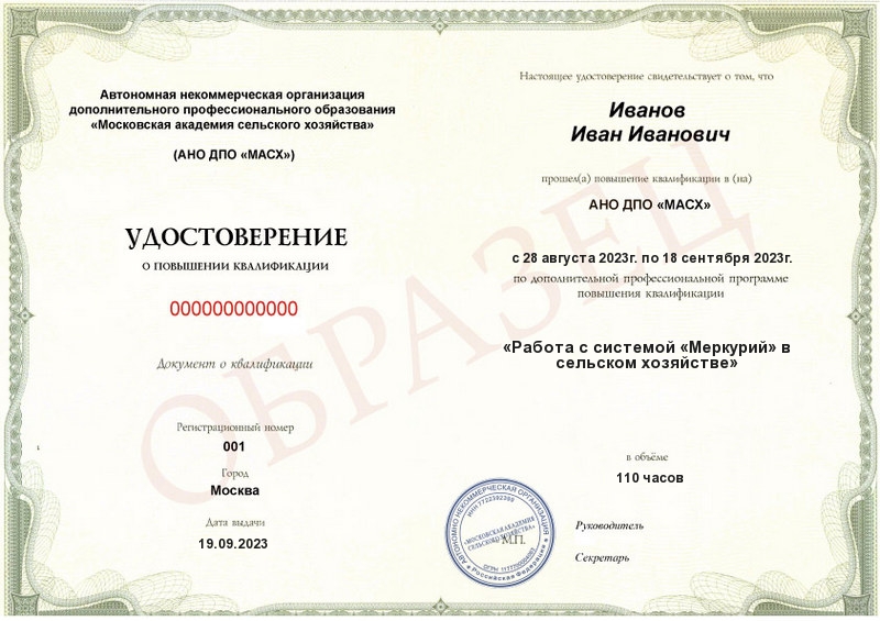Работа с системой «Меркурий» в сельском хозяйстве (110ч)