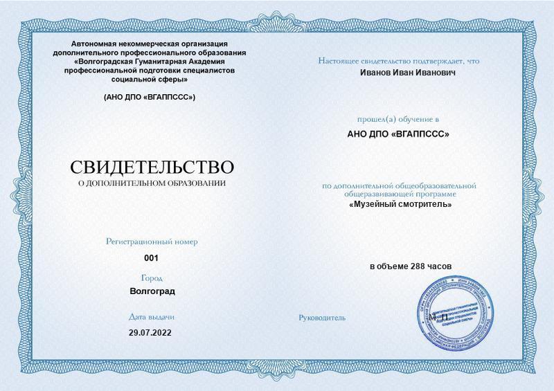 Музейный смотритель (288ч)
