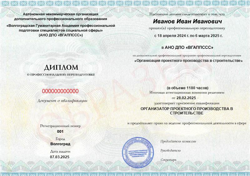 Да, АНО ДПО «ВГАППССС» выдаёт документы о квалификации установленного организацией образца, возможность выдачи образовательной организацией документов установленного образца регламентирована приказом Минобрнауки РФ №499.