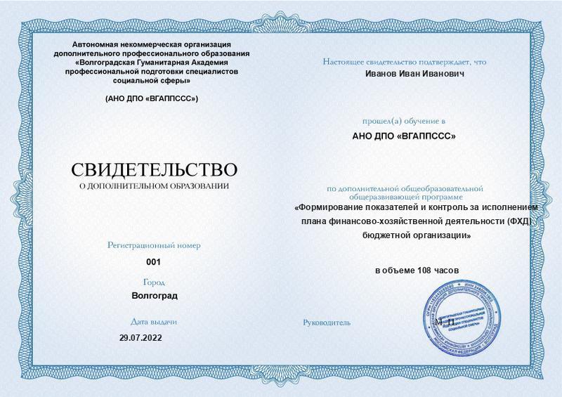 Да, АНО ДПО «ВГАППССС» выдаёт документы о квалификации установленного организацией образца, возможность выдачи образовательной организацией документов установленного образца регламентирована приказом Минобрнауки РФ №499.